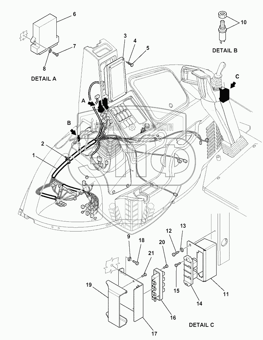 Каталог запасных частей к технике: Komatsu WB97S-5E0. ELECTRICAL SYSTEM (CAB) (3/5)