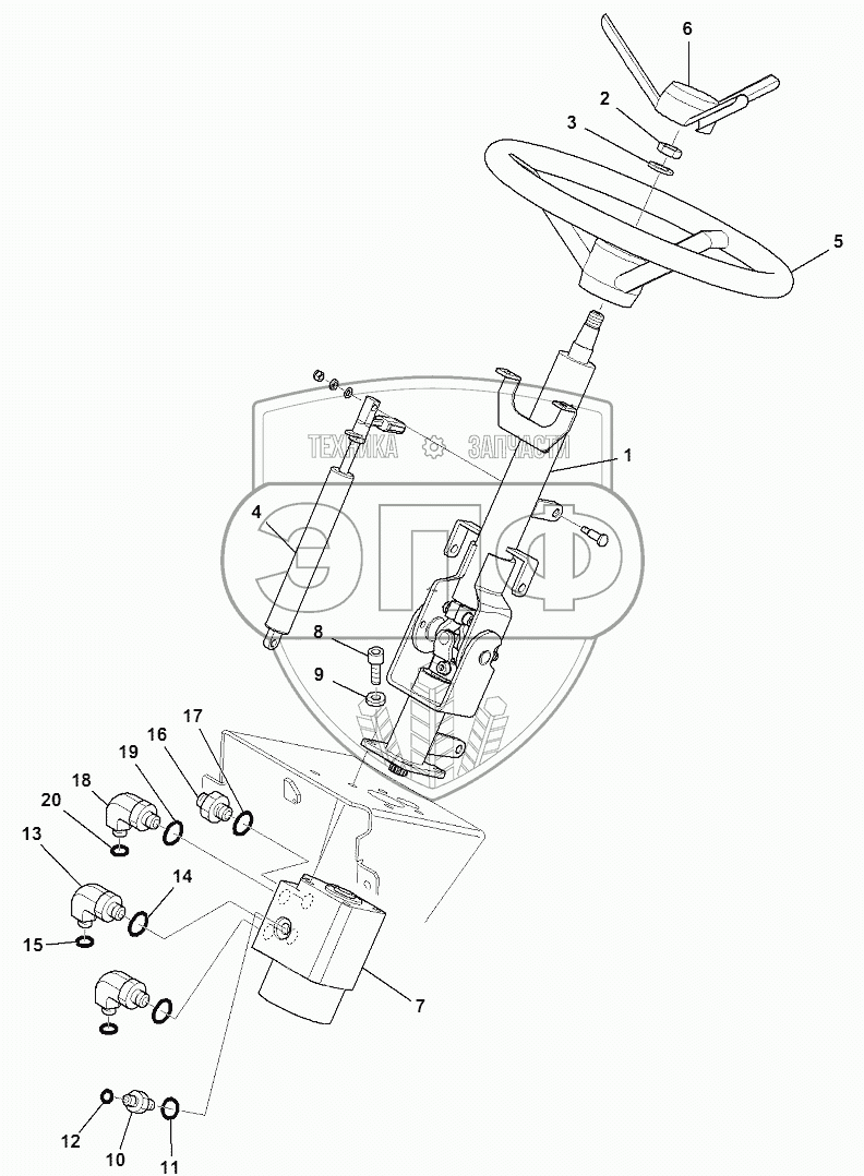 Каталог запасных частей к технике: Komatsu WB97S-5E0. STEERING WHEEL
