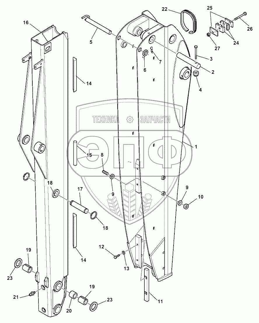 Каталог запасных частей к технике: Komatsu WB97S-5E0. TELESCOPIC ARM (1/2)