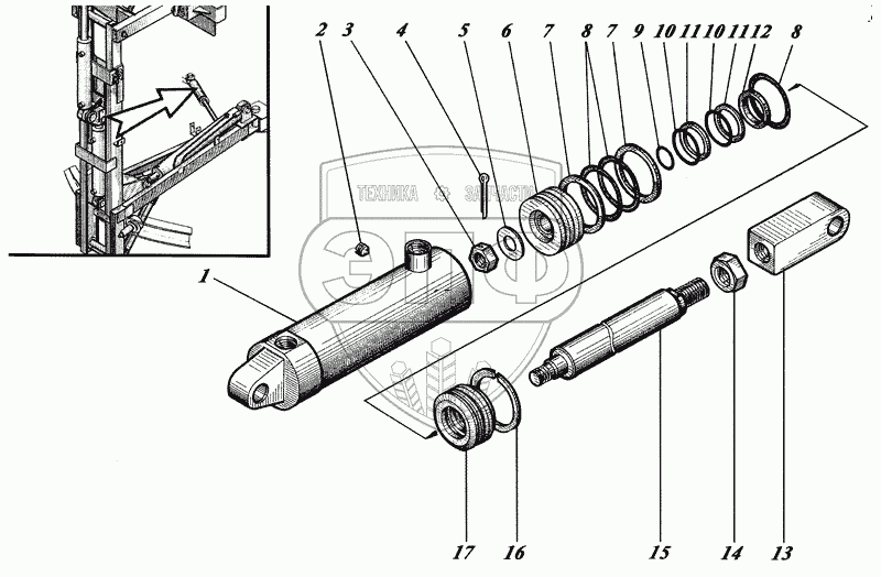 Каталог запасных частей к технике: Коммаш КО-440. Гидроцилиндр