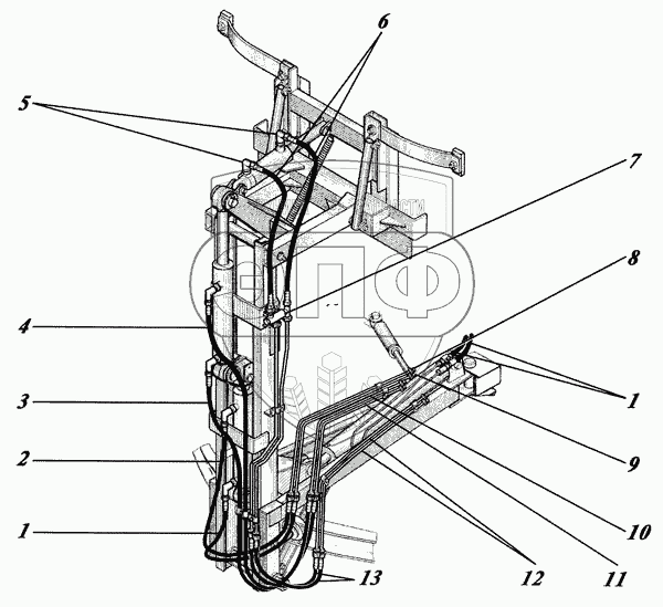 Каталог запасных частей к технике: Коммаш КО-440. Монтаж гидросистемы на манипуляторе