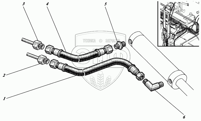 Каталог запасных частей к технике: Коммаш КО-440. Монтаж гидросистемы на надрамнике