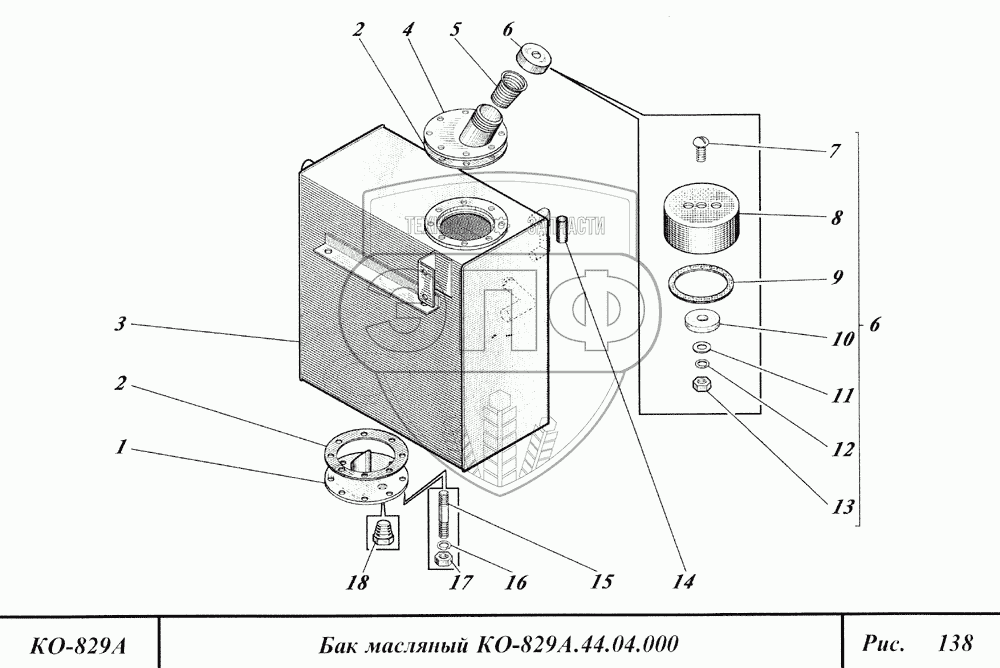 Каталог запасных частей к технике: Коммаш КО-829А. Бак масляный