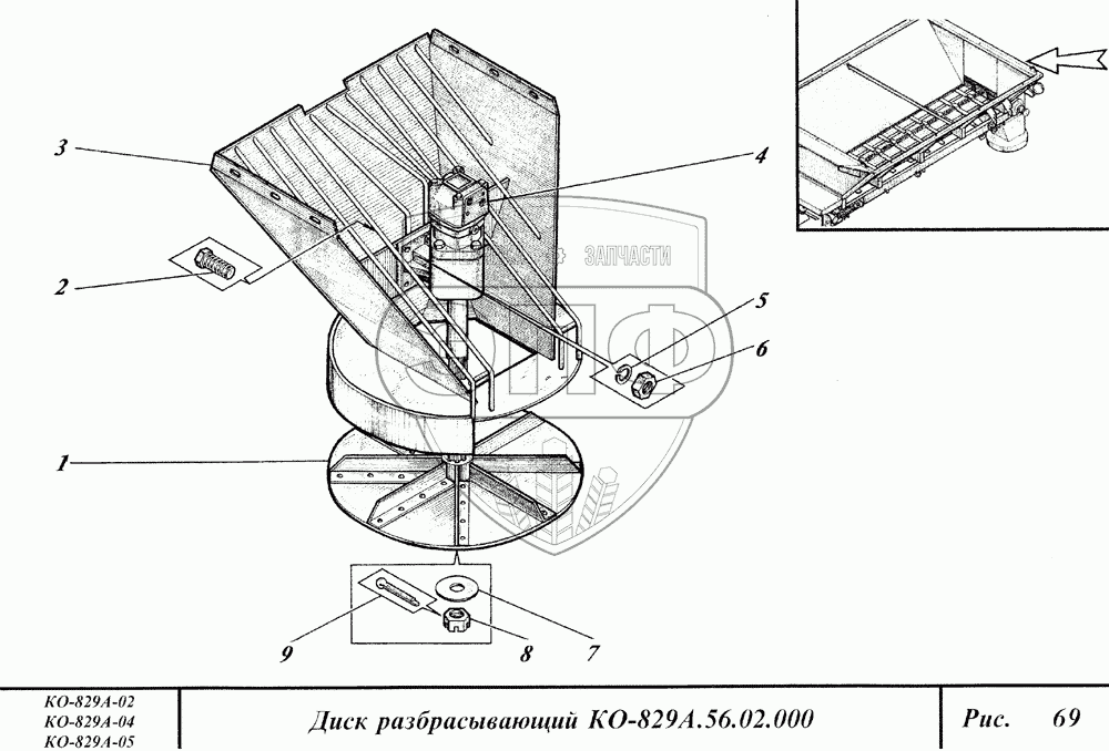 Каталог запасных частей к технике: Коммаш КО-829А. Диск разбрасывающий
