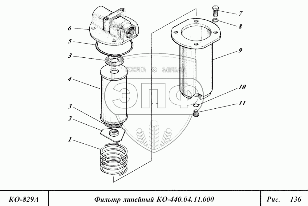 Каталог запасных частей к технике: Коммаш КО-829А. Фильтр линейный