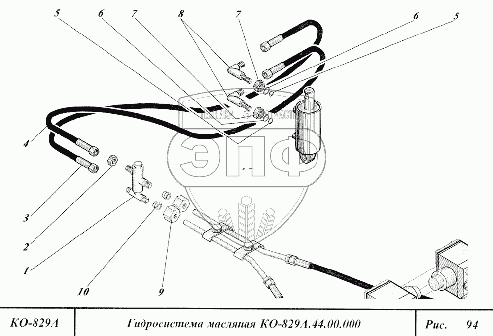 Каталог запасных частей к технике: Коммаш КО-829А. Гидросистема масляная