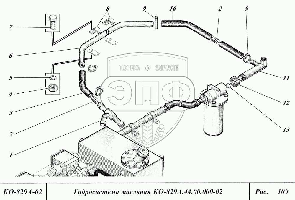 Каталог запасных частей к технике: Коммаш КО-829А. Гидросистема масляная