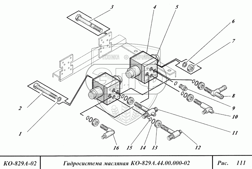 Каталог запасных частей к технике: Коммаш КО-829А. Гидросистема масляная