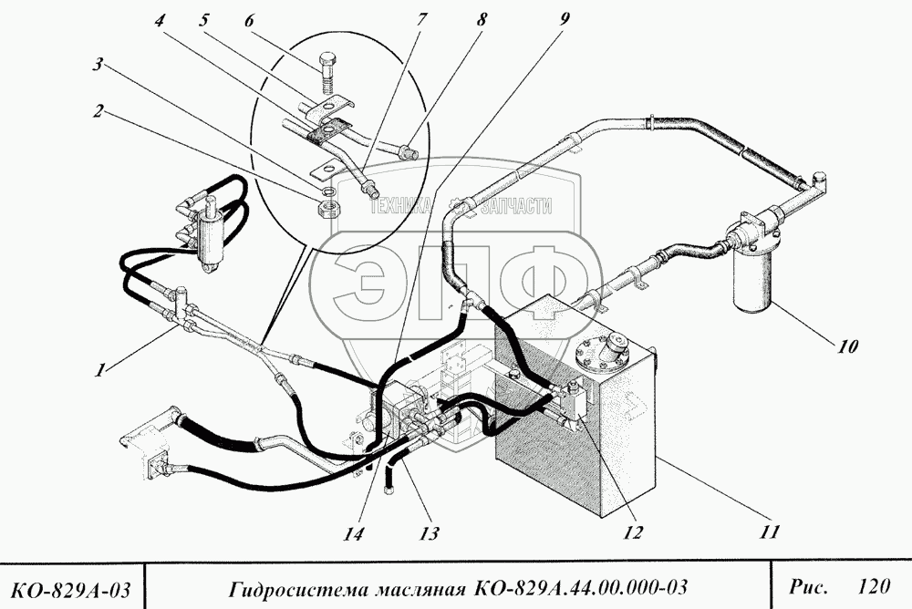 Каталог запасных частей к технике: Коммаш КО-829А. Гидросистема масляная
