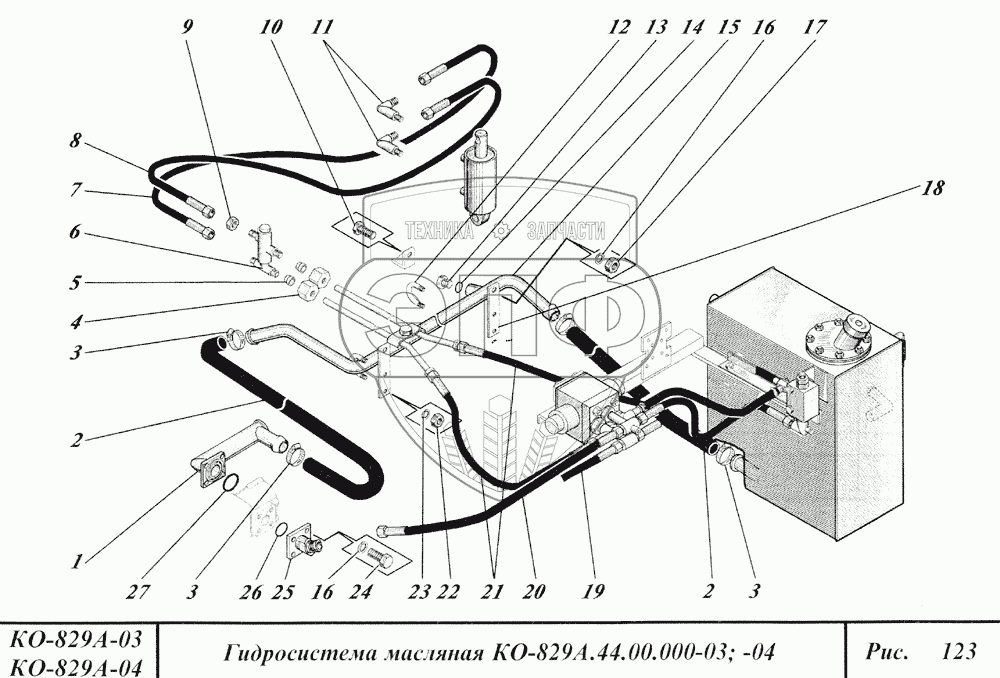 Каталог запасных частей к технике: Коммаш КО-829А. Гидросистема масляная