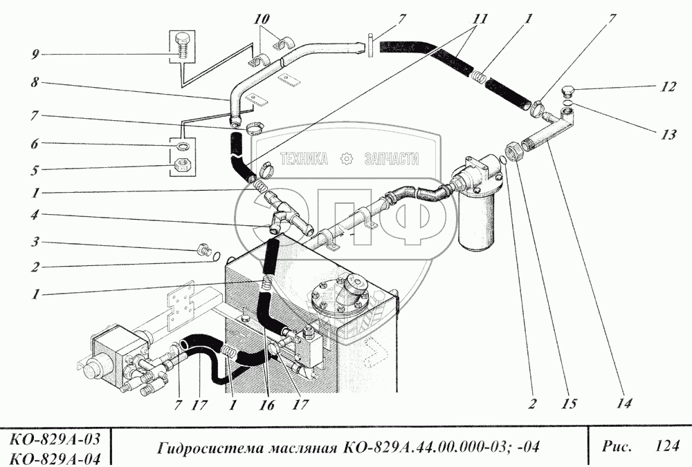 Каталог запасных частей к технике: Коммаш КО-829А. Гидросистема масляная