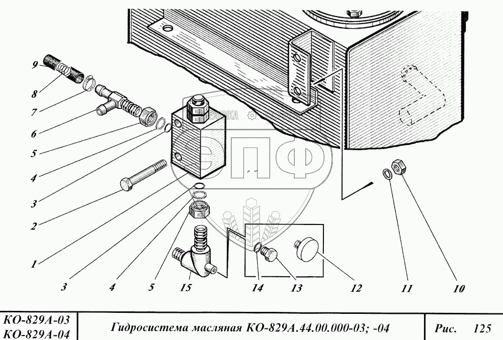 Каталог запасных частей к технике: Коммаш КО-829А. Гидросистема масляная