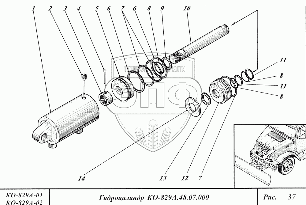 Каталог запасных частей к технике: Коммаш КО-829А. Гидроцилиндр
