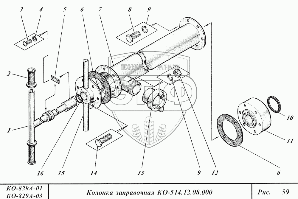 Каталог запасных частей к технике: Коммаш КО-829А. Колонка заправочная