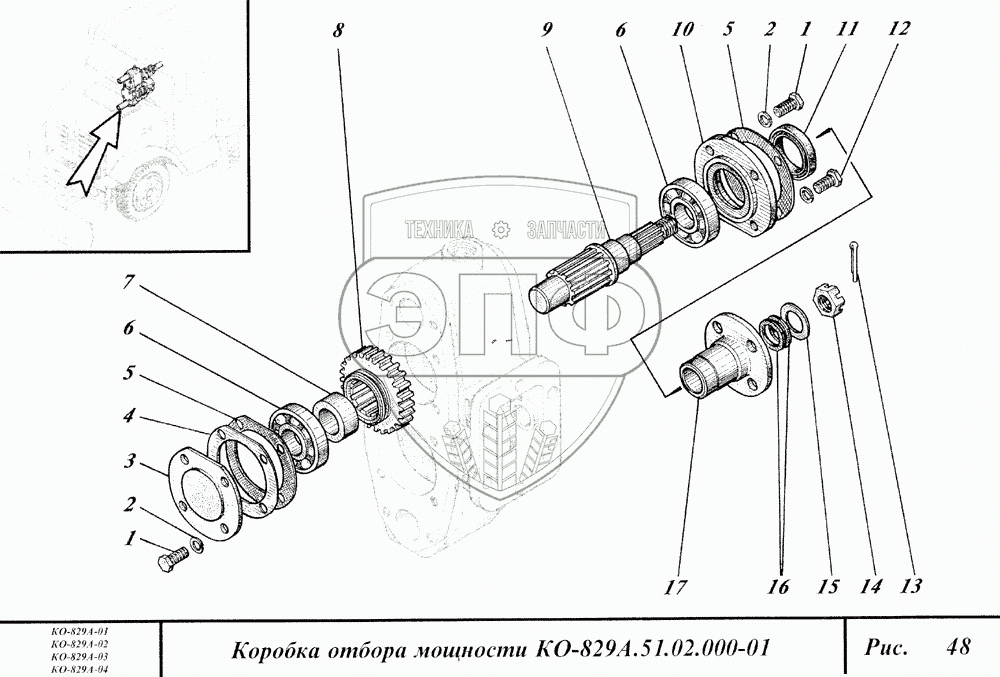 Каталог запасных частей к технике: Коммаш КО-829А. Коробка отбора мощности