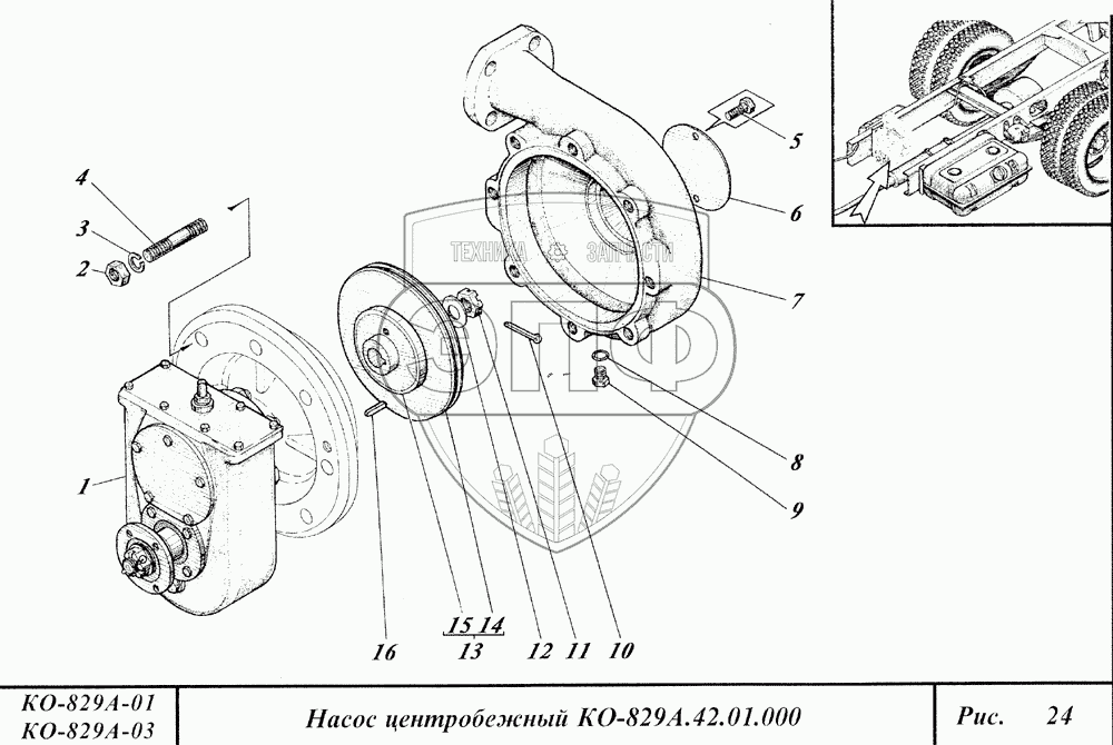 Каталог запасных частей к технике: Коммаш КО-829А. Насос центробежный