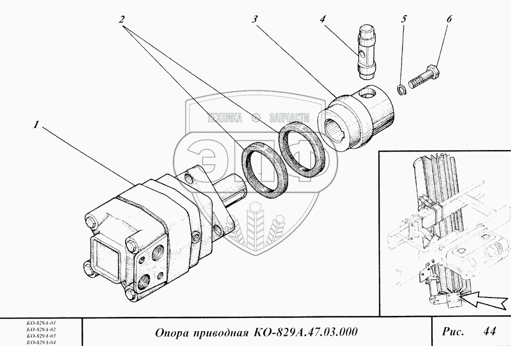 Каталог запасных частей к технике: Коммаш КО-829А. Опора приводная
