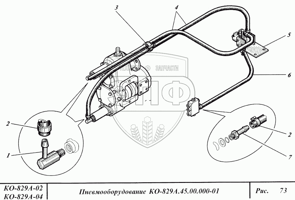 Каталог запасных частей к технике: Коммаш КО-829А. Пневмооборудование