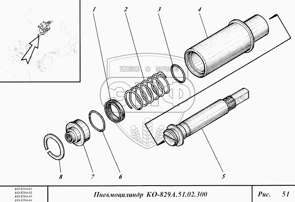 Каталог запасных частей к технике: Коммаш КО-829А. Пневмоцилиндр