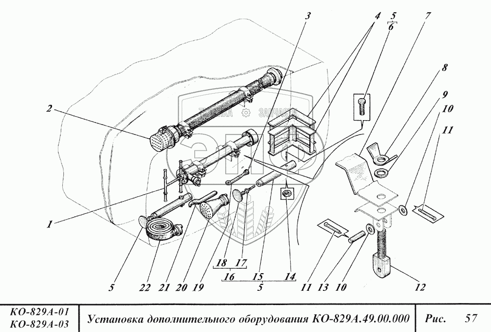 Каталог запасных частей к технике: Коммаш КО-829А. Установка дополнительного оборудования