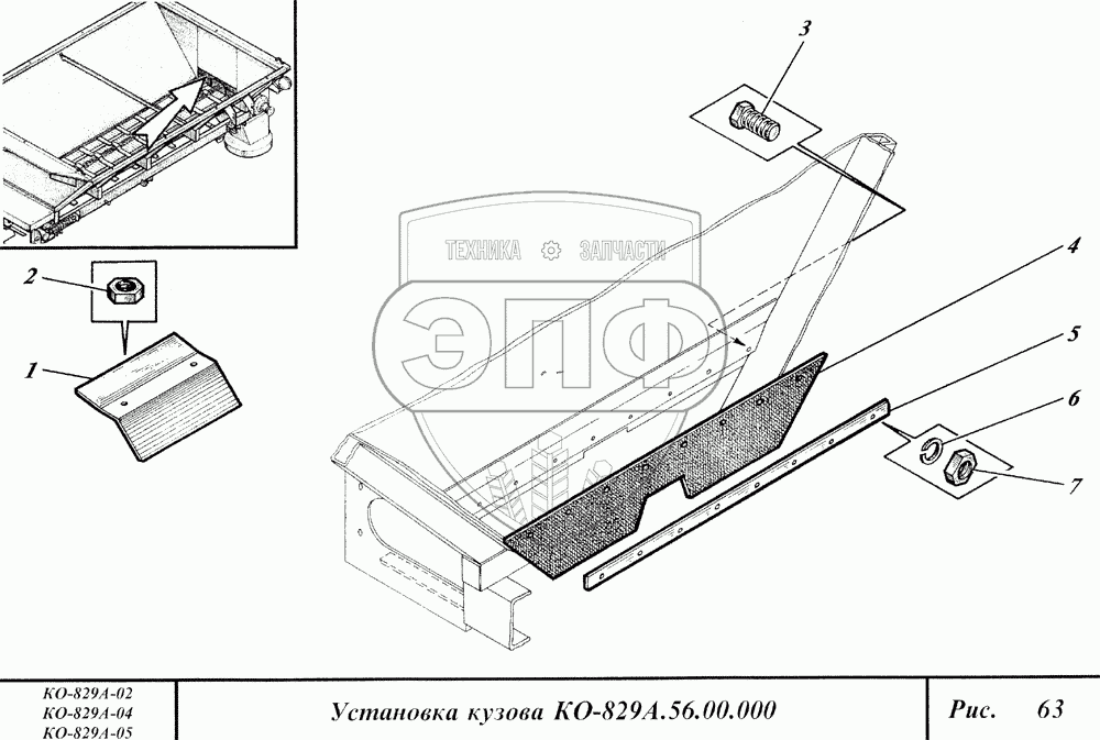 Каталог запасных частей к технике: Коммаш КО-829А. Установка кузова