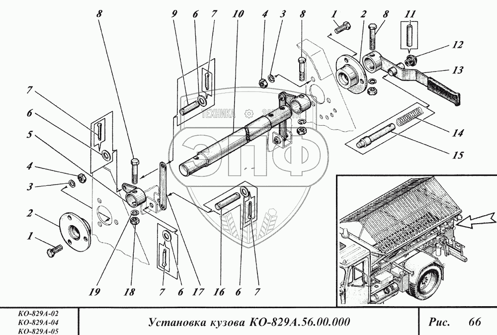 Каталог запасных частей к технике: Коммаш КО-829А. Установка кузова