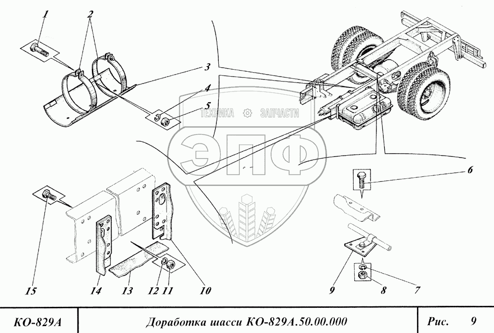 Каталог запасных частей к технике: Коммаш КО-829А. Установка надрамника