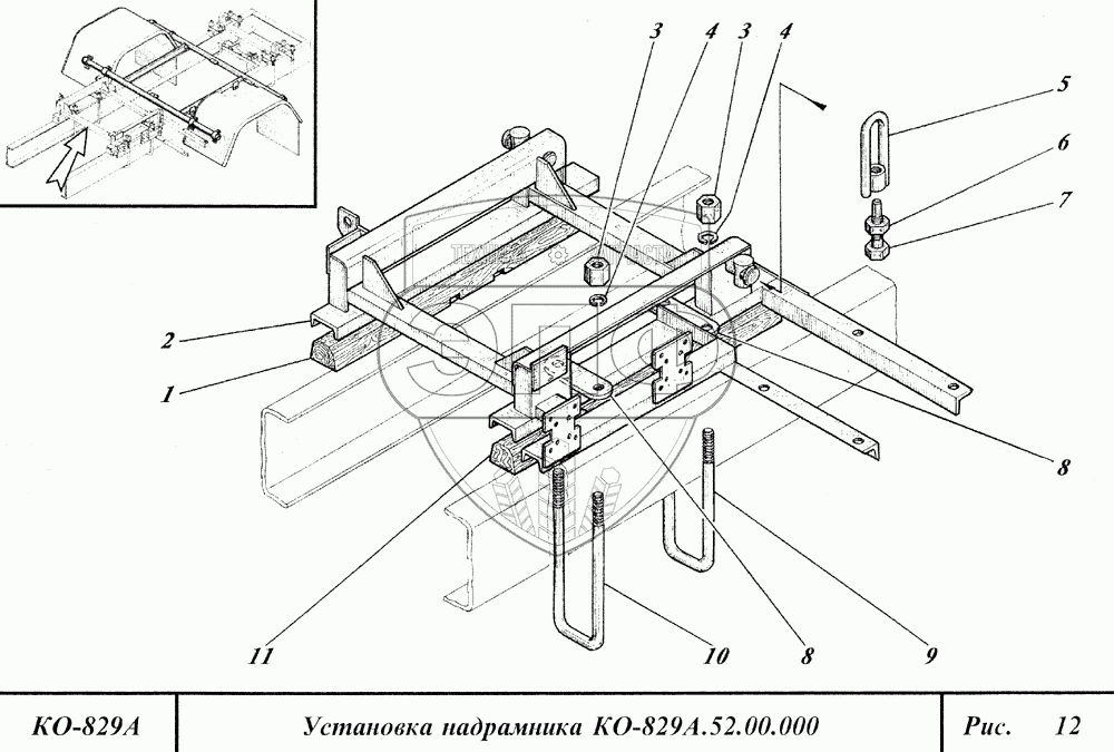 Каталог запасных частей к технике: Коммаш КО-829А. Установка надрамника