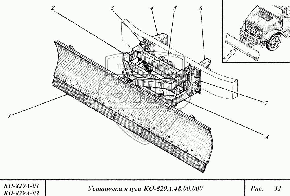 Каталог запасных частей к технике: Коммаш КО-829А. Установка плуга
