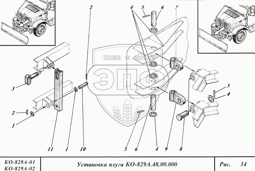 Каталог запасных частей к технике: Коммаш КО-829А. Установка плуга