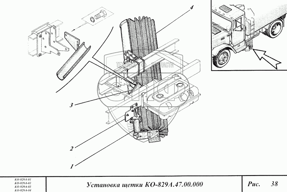 Каталог запасных частей к технике: Коммаш КО-829А. Установка щетки