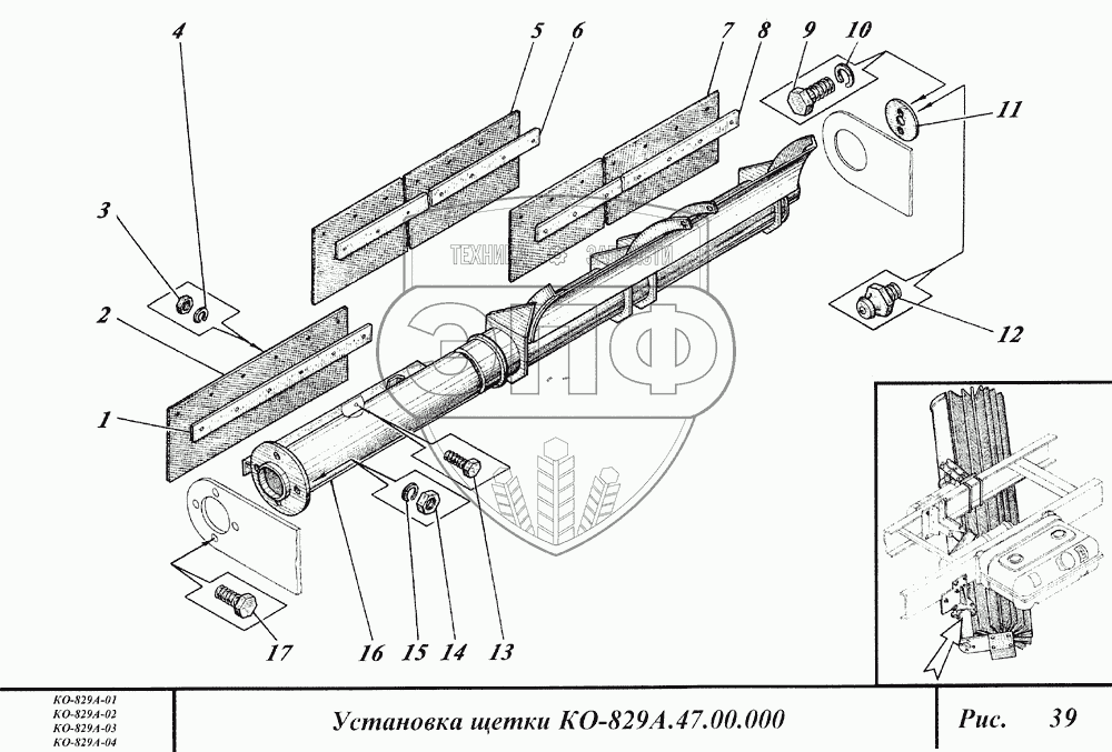 Каталог запасных частей к технике: Коммаш КО-829А. Установка щетки