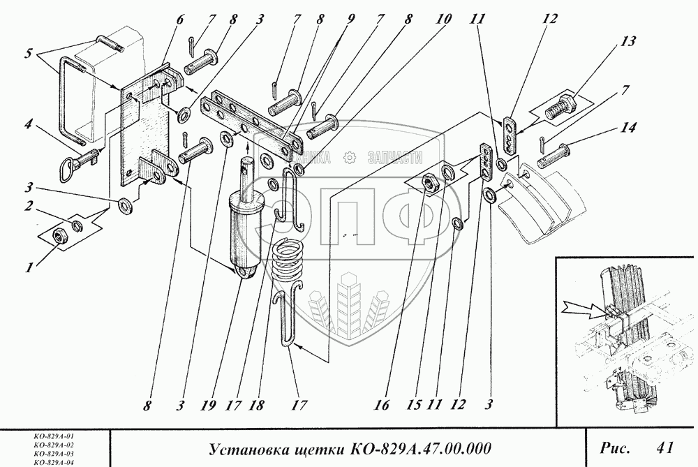 Каталог запасных частей к технике: Коммаш КО-829А. Установка щетки