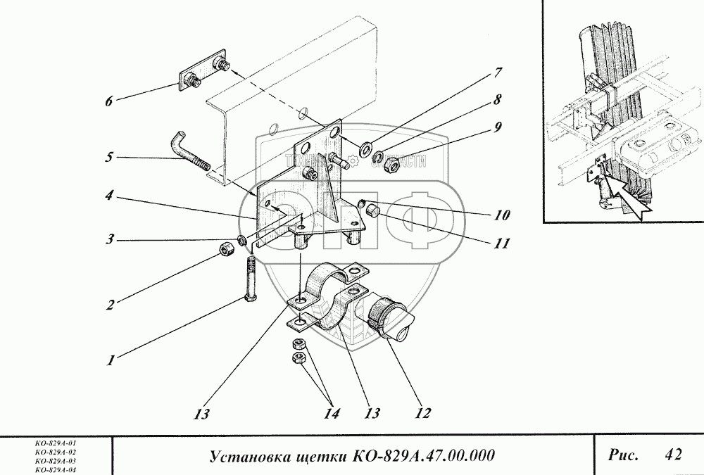 Каталог запасных частей к технике: Коммаш КО-829А. Установка щетки