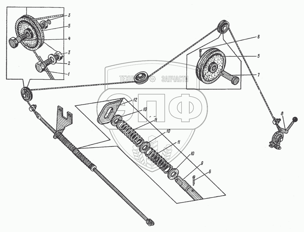 Каталог запасных частей к технике: Ковровец Э-652Б. 652А.483 Управление двигателем