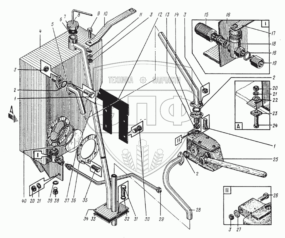 Каталог запасных частей к технике: Ковровец Э-652Б. 652Б.479 Установка насоса и бачка