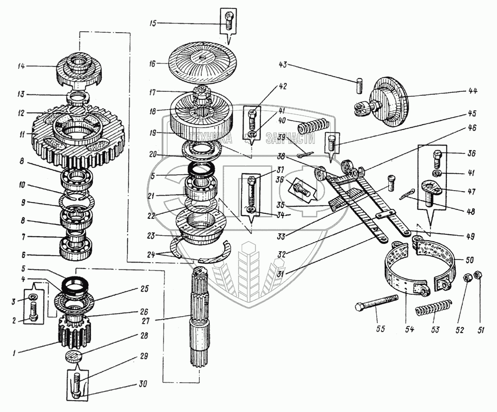 Каталог запасных частей к технике: Ковровец Э-652Б. 652Б.970 Механизм поворота