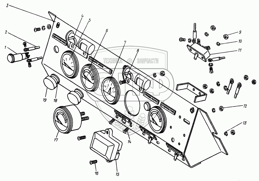 Каталог запасных частей к технике: Ковровец ЭО-4124. Щиток контрольных приборов