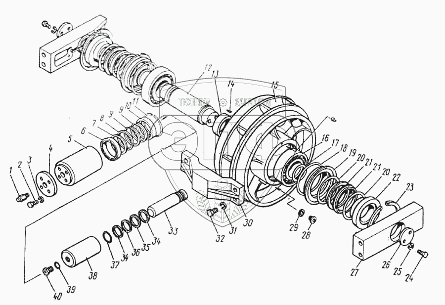 Каталог запасных частей к технике: Ковровец ЭО-4124А. Механизм натяжения 4125.16.64.000