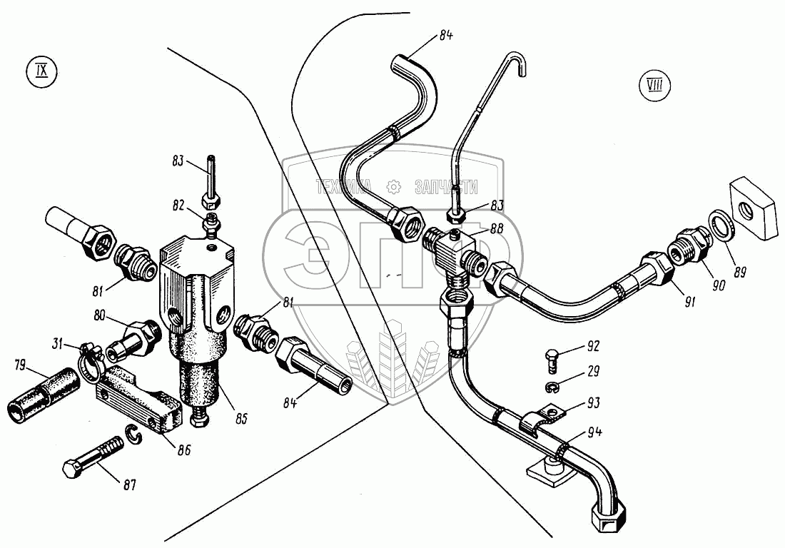 Каталог запасных частей к технике: Кранэкс МТП-71А. Гидросистема управления
