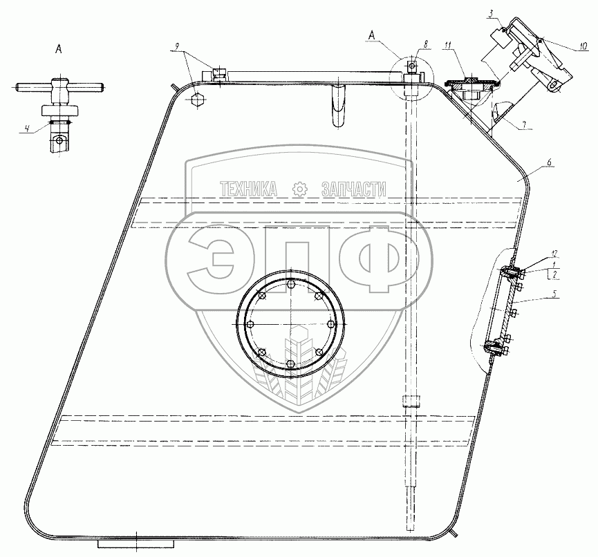 Каталог запасных частей к технике: КЗКТ-74281. Бак топливный 7427-1101010-10