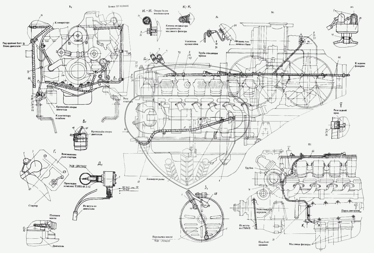 Каталог запасных частей к технике: КЗКТ-74281. Монтаж электрооборудования 7428-3700010