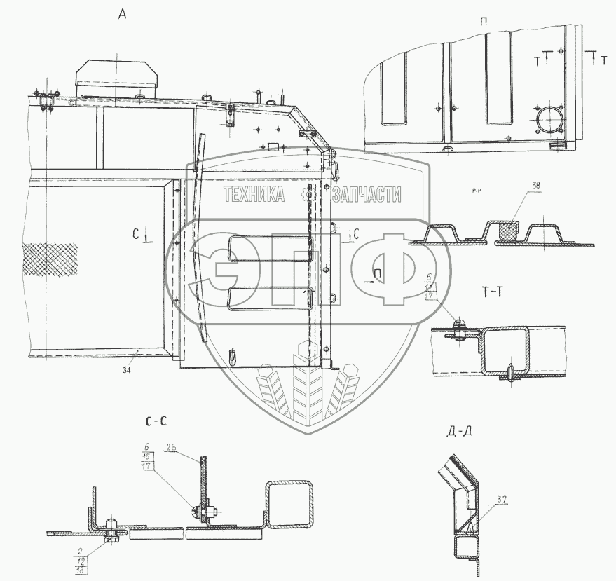 Каталог запасных частей к технике: КЗКТ-74281. Облицовка радиатора 7427-8401010-11