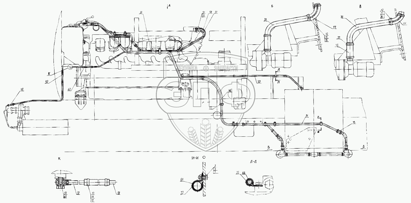 Каталог запасных частей к технике: КЗКТ-74281. Трубопроводы топливные 7427-1104001-10
