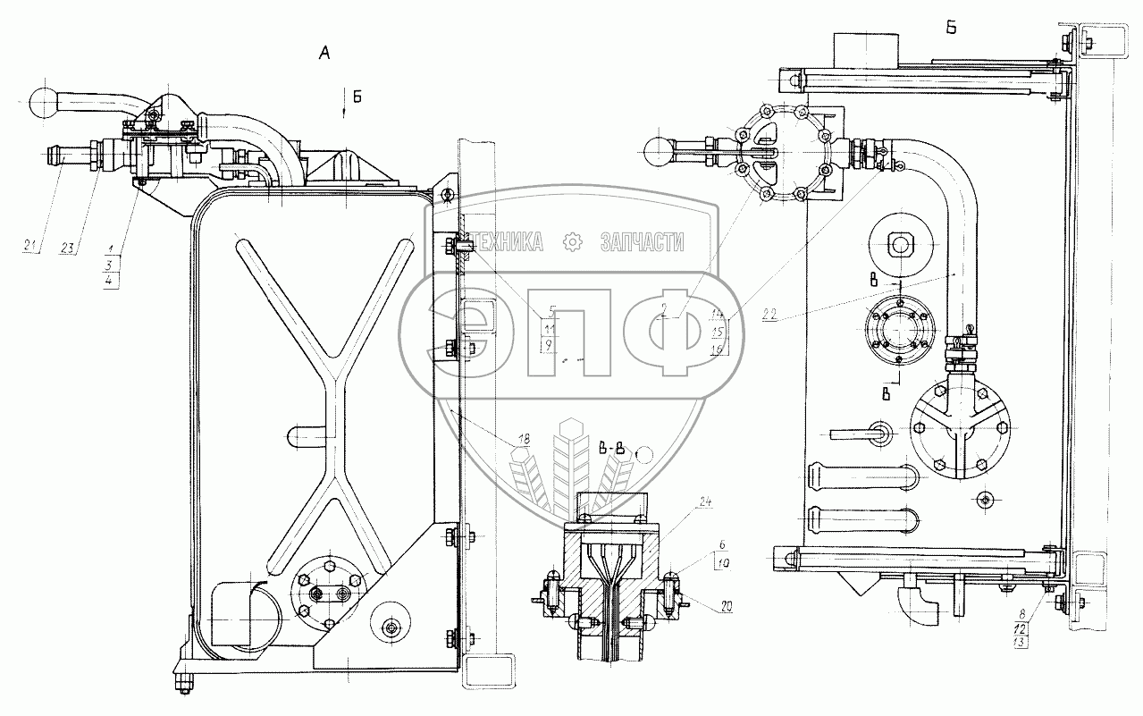 Каталог запасных частей к технике: КЗКТ-74281. Установка дополнительного топливного бака 7427-1102002