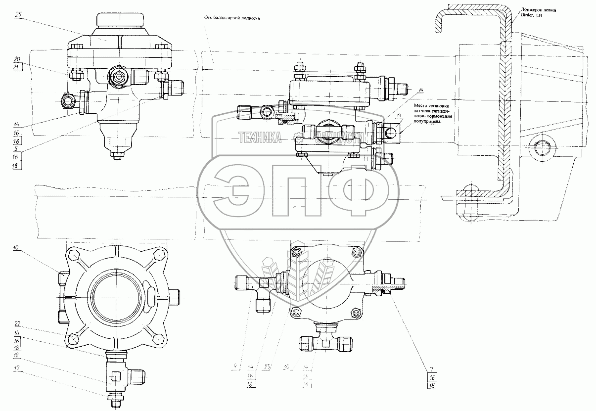 Каталог запасных частей к технике: КЗКТ-74281. Установка клапанов 7426-3522001