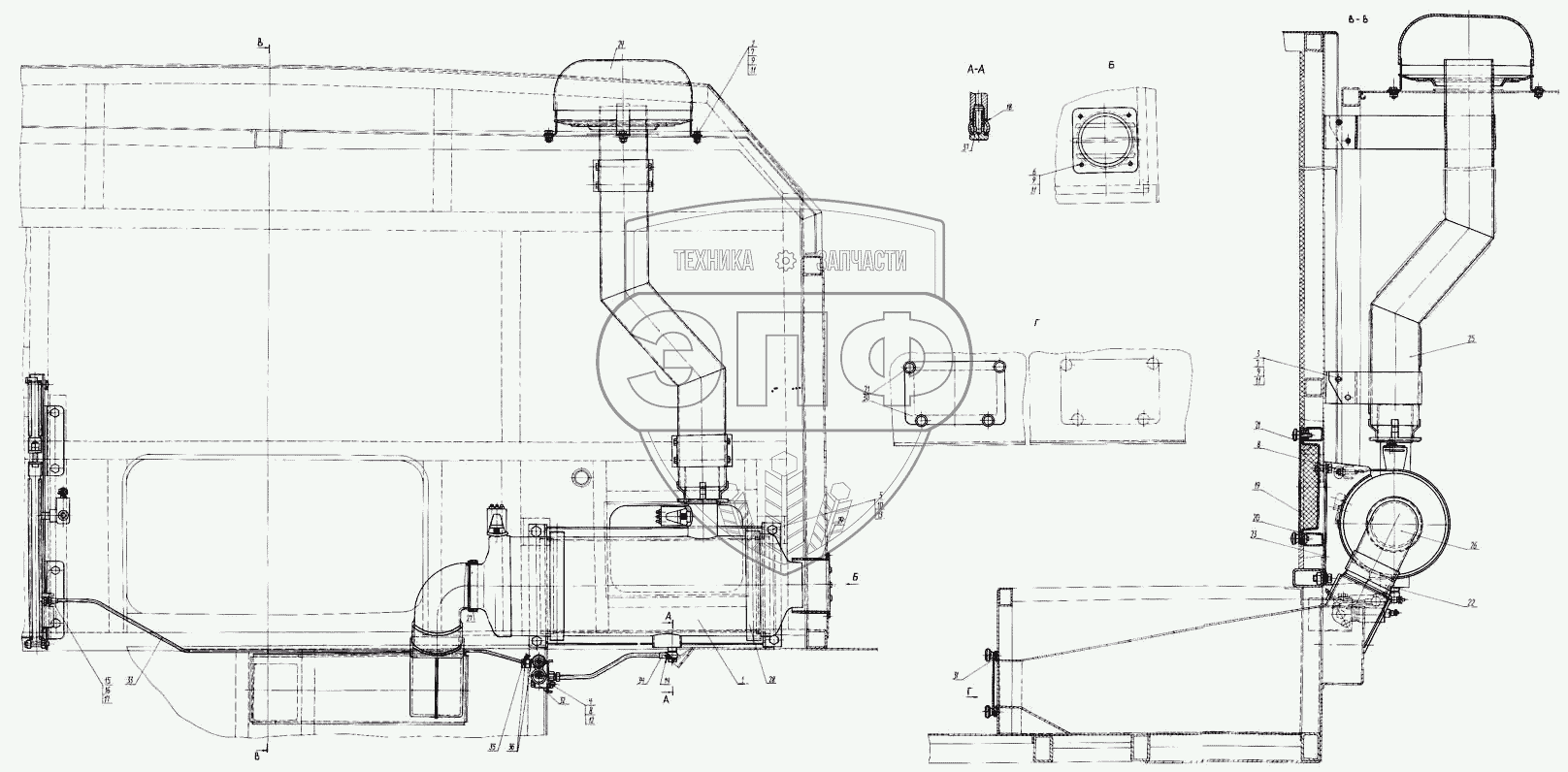 Каталог запасных частей к технике: КЗКТ-74281. Установка отопителя 7427-8106008