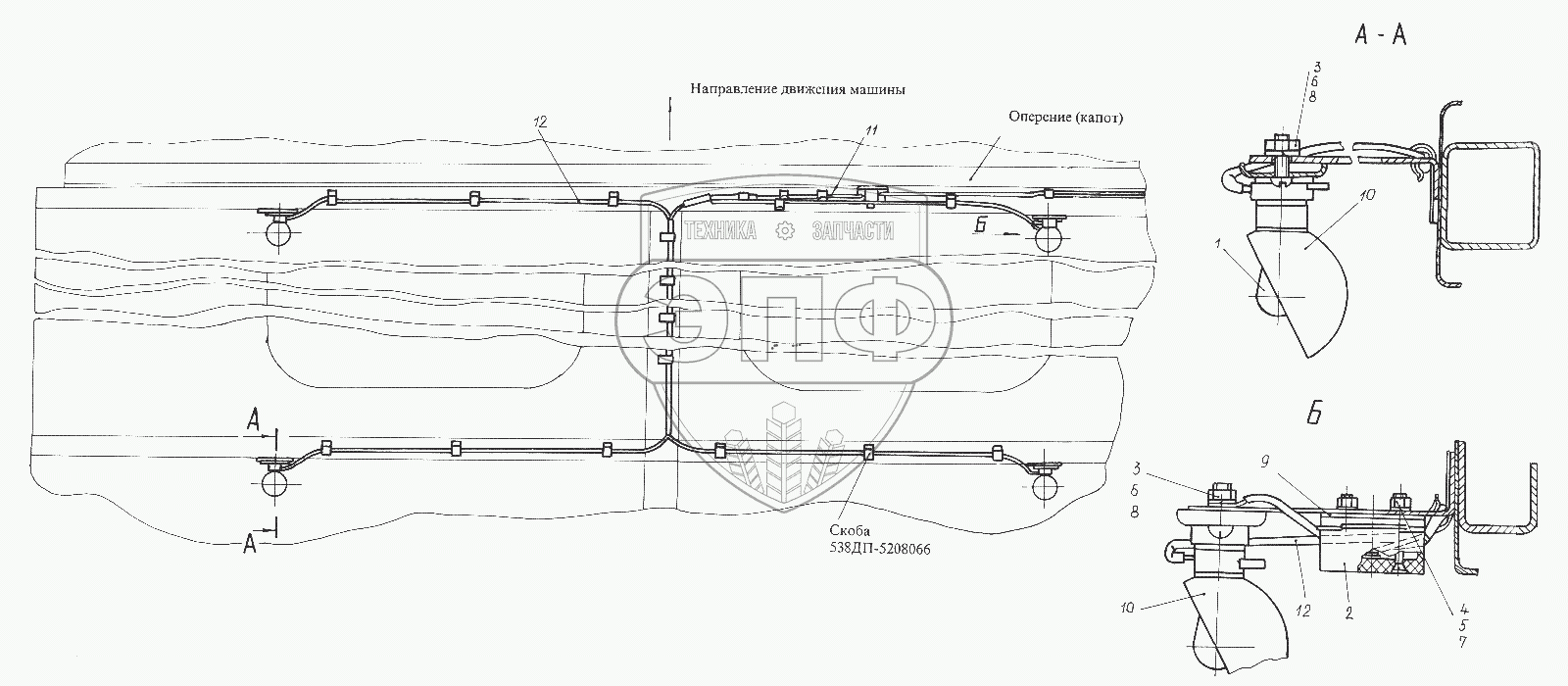 Каталог запасных частей к технике: КЗКТ-74281. Установка подкапотных ламп 7427-3700044