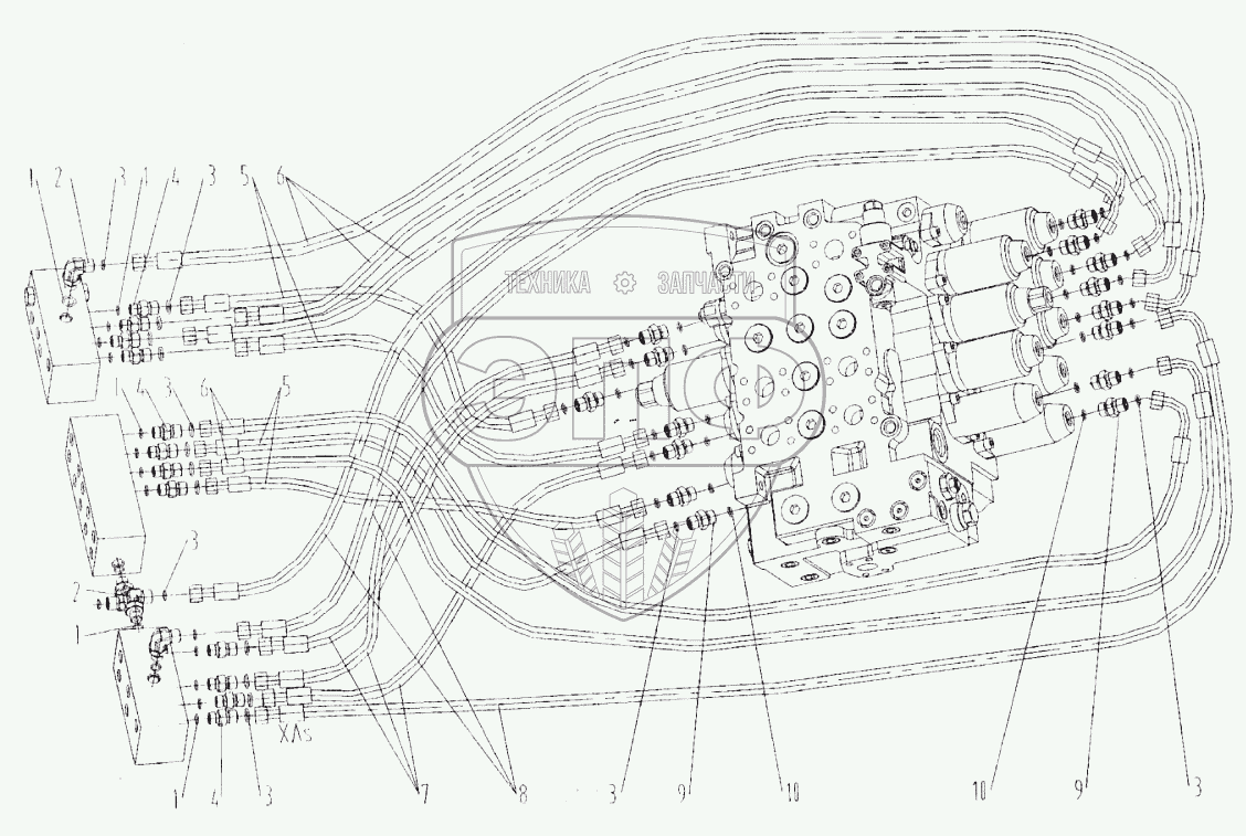 Каталог запасных частей к технике: LiuGong CLG-220. Гидросистема управления