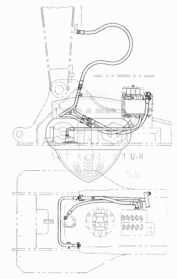 Каталог запасных частей к технике: LiuGong CLG-220. Основной трубопровод гидромолота на раме